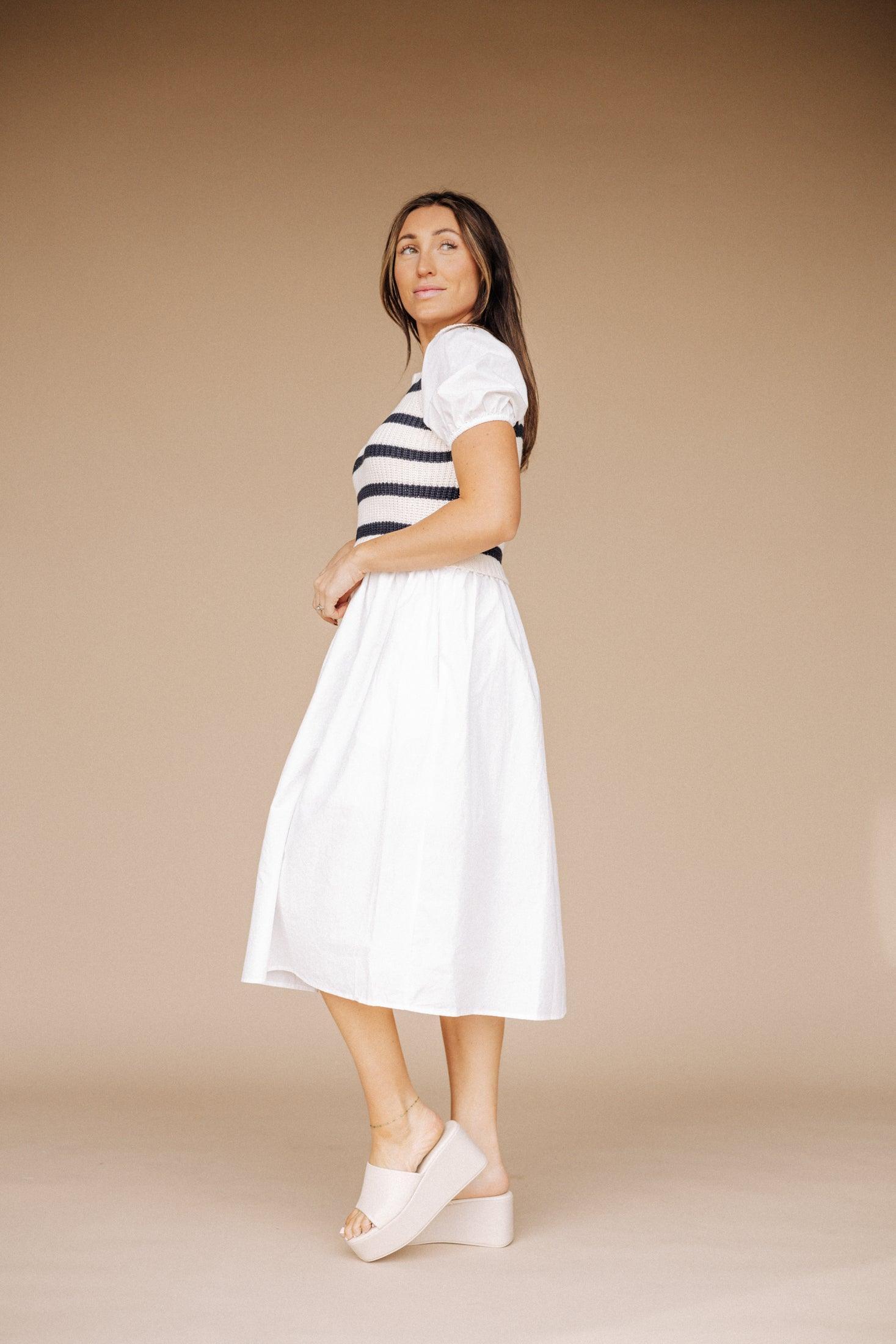 + Free ShippingIndulge in the sophistication of the Annie Dress. The elegant puff sleeves add a touch of drama to this sweater top midi dress. while the midi length provides a tasteful and exclusive silhouette. Elevate your style with this luxurious piece. perfect for any occasion. Final Sale Item.