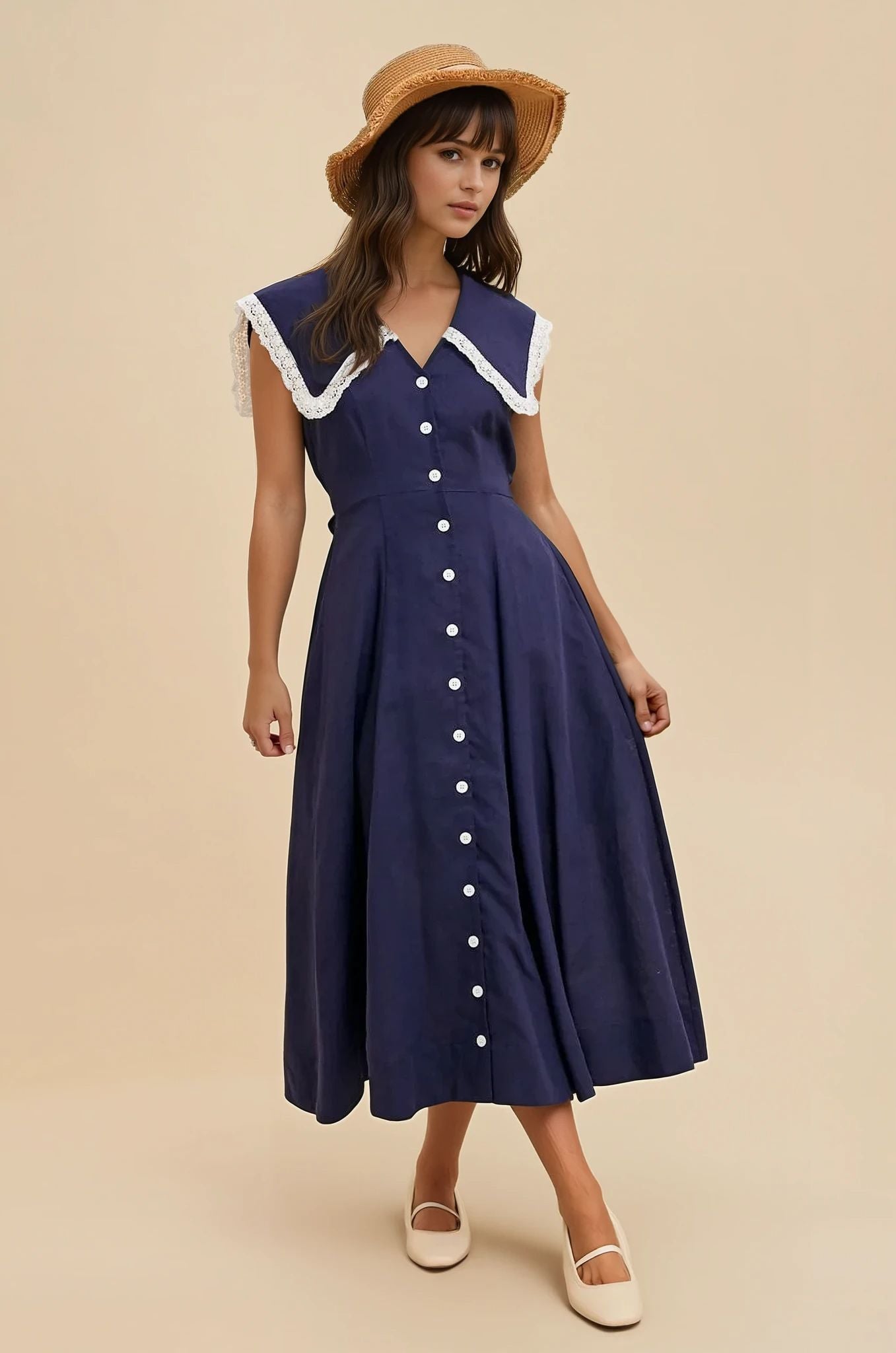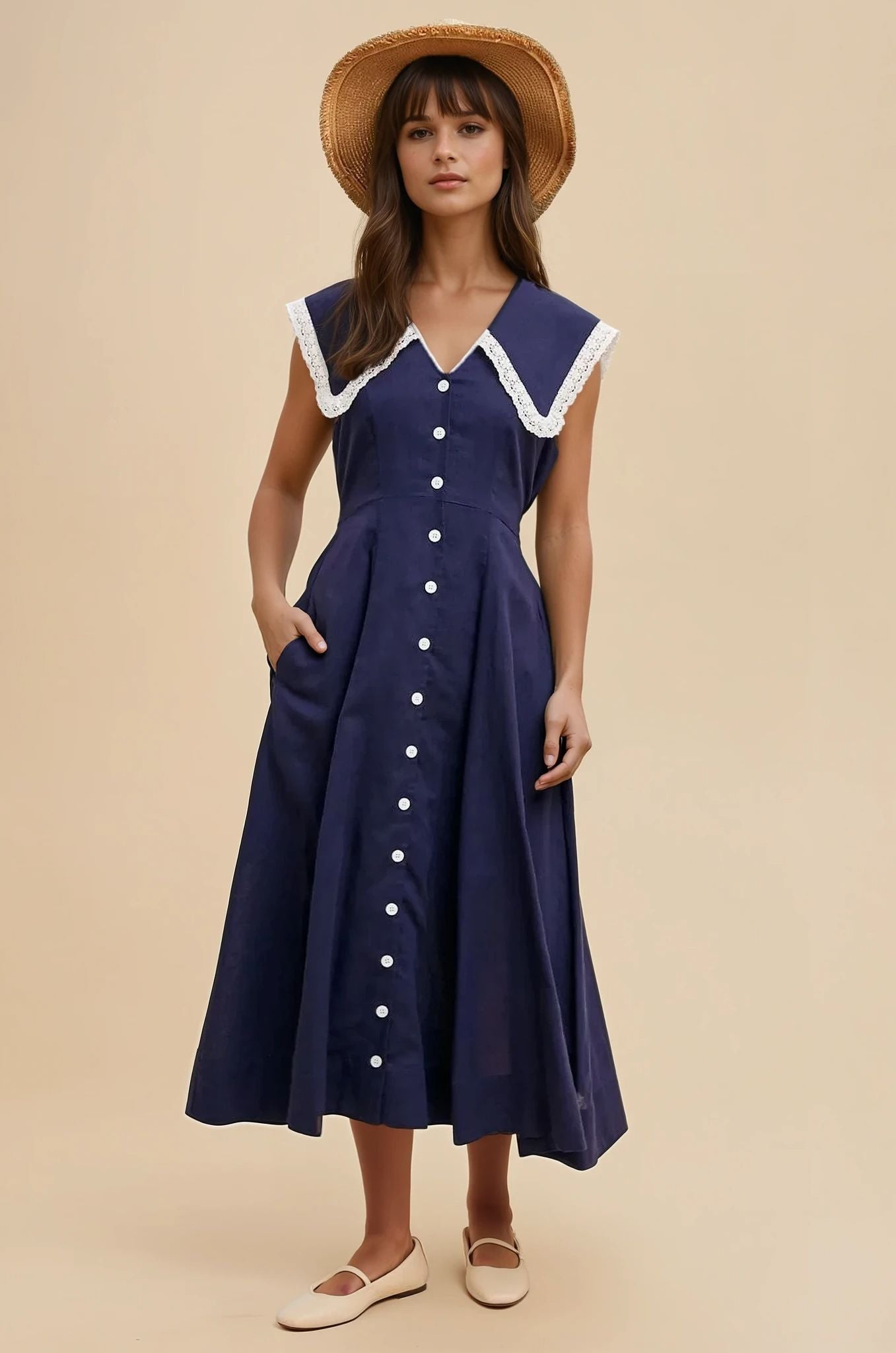 + Free ShippingIntroducing the Clara Statement Collar Midi Dress. A true gem of sophistication and luxury. this dress boasts a maxi length for a striking silhouette. a statement collar that exudes elegance. and exquisite button detailing for a touch of glamour. Complete with a v neck design for a sensual and refined look. Elevate your wardrobe with this must-have piece.