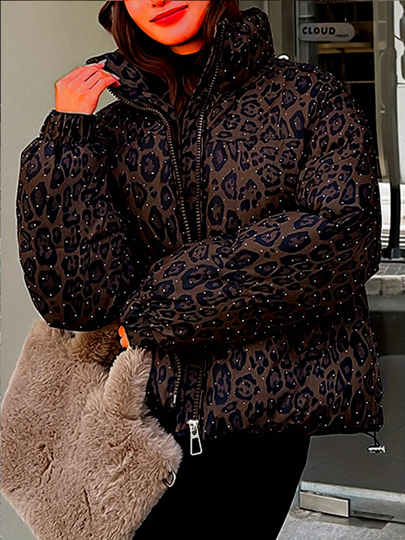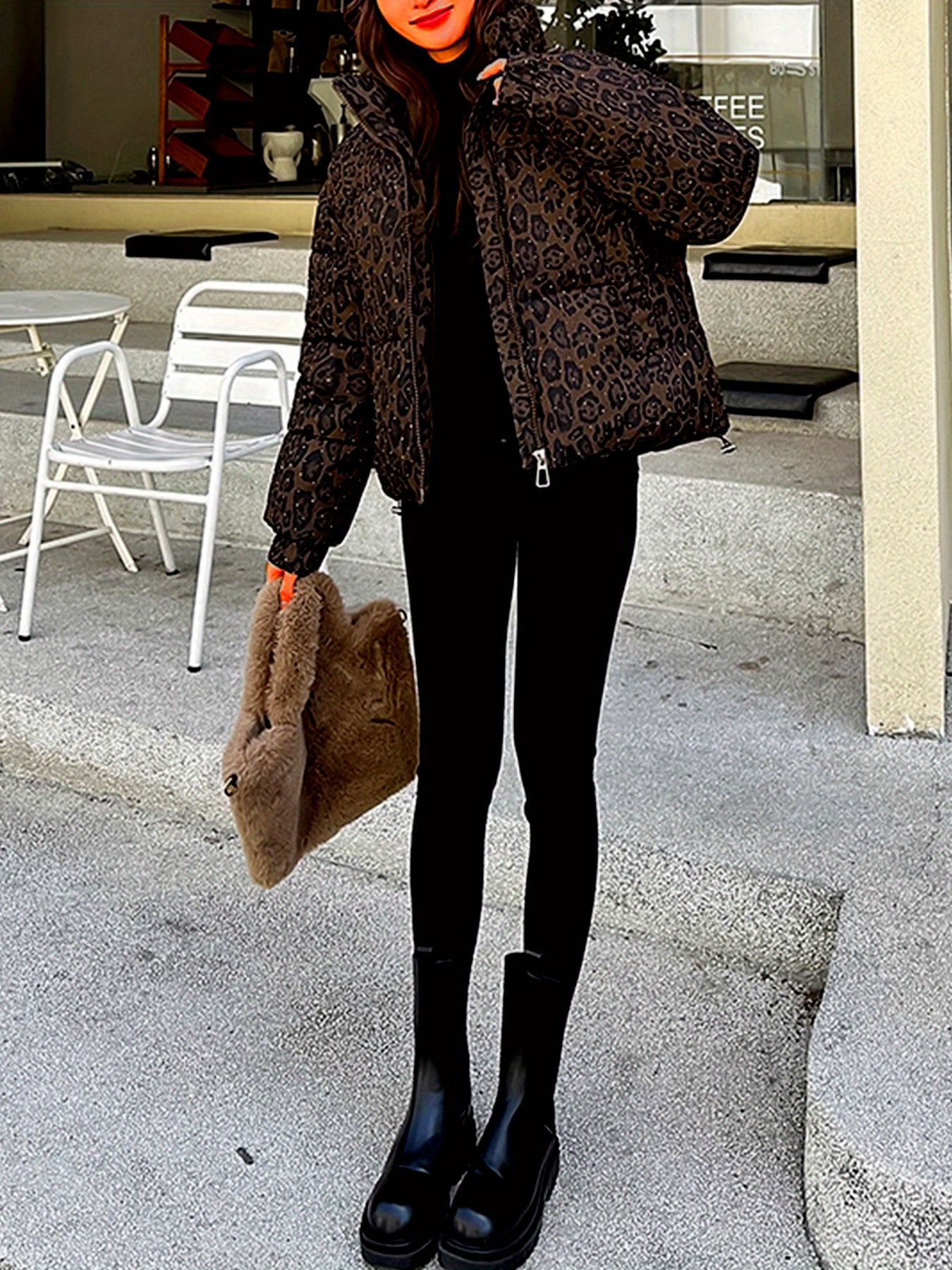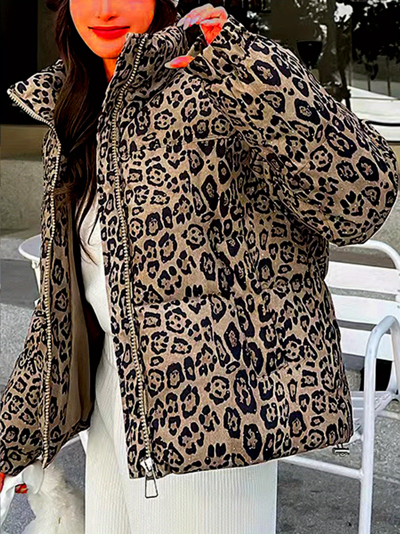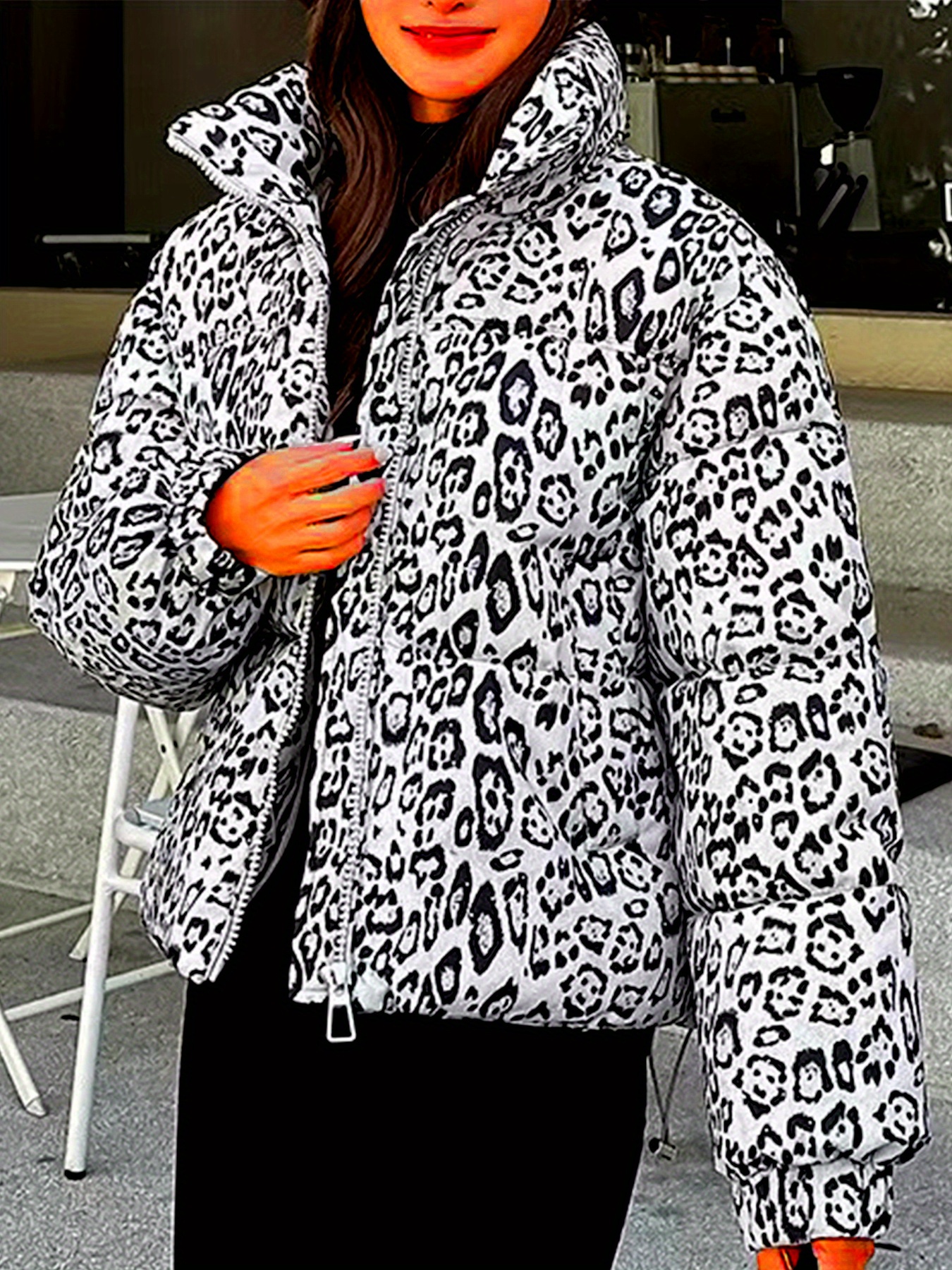 Women’S Leopard Print Jacket – Stylish Long Sleeve Zip-Up Coat with Pockets, Black & White Animal Pattern, Perfect for Fallu002FWinter Outerwear, Leopard Print Clothing